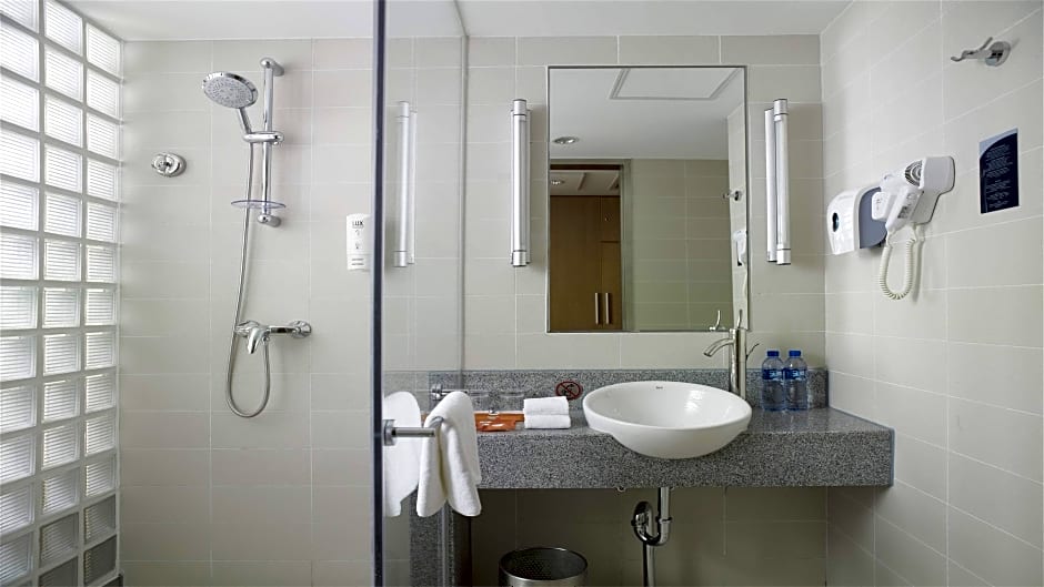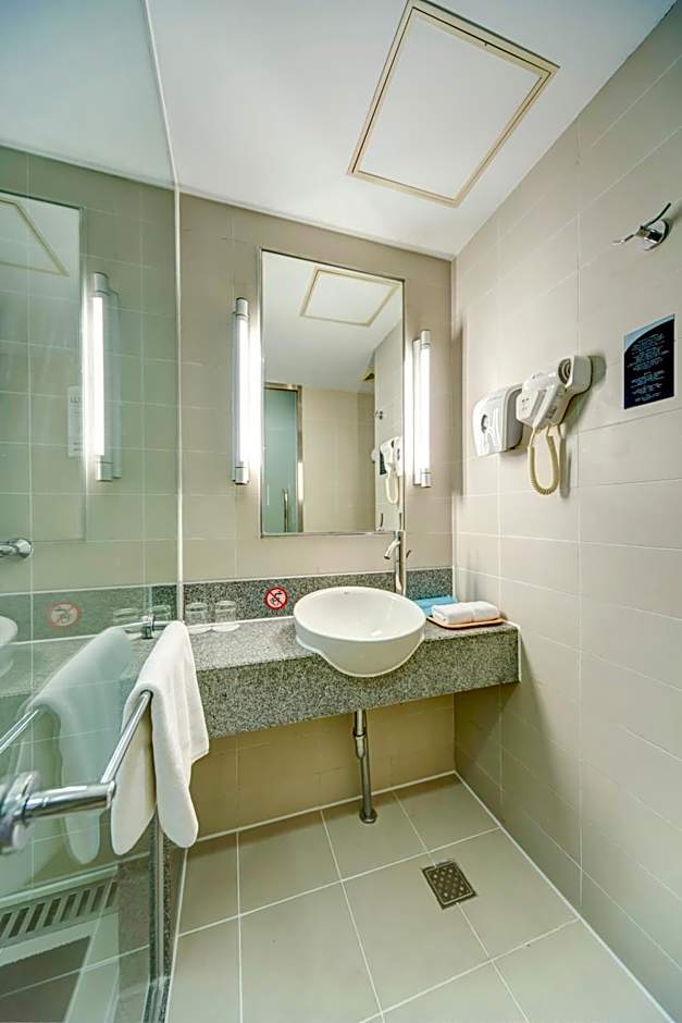 Nonsmoking twin-sharing room features a flat-screen satellite TV, seating area and an private bathroom with a shower or bathtub.